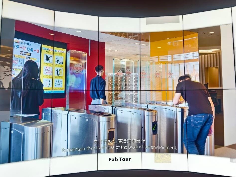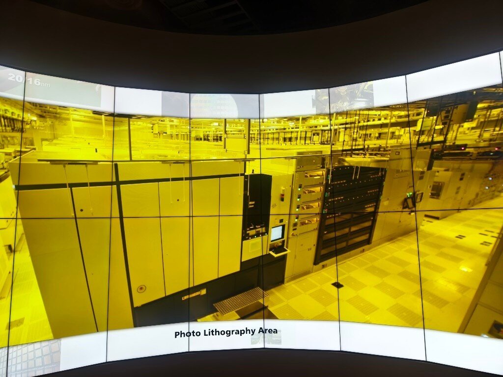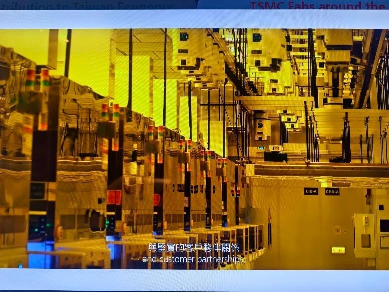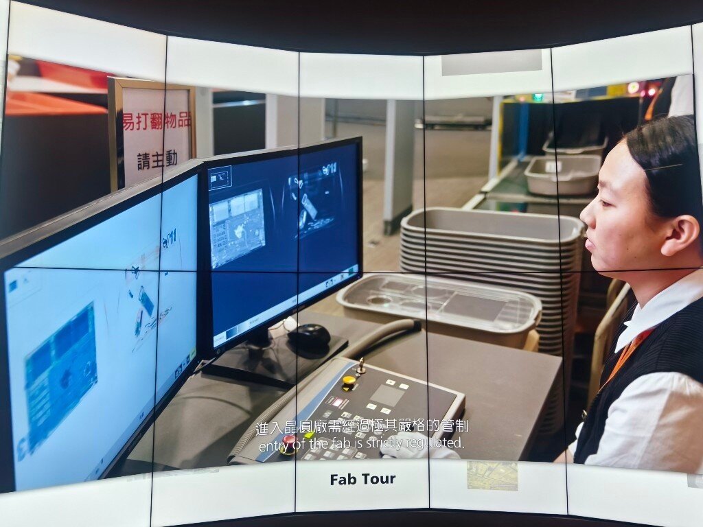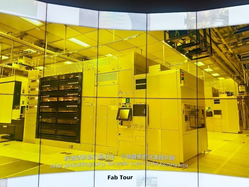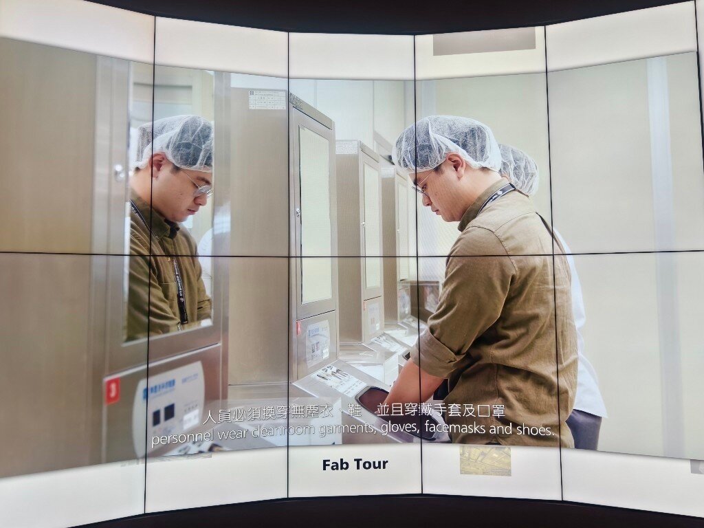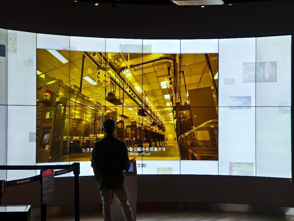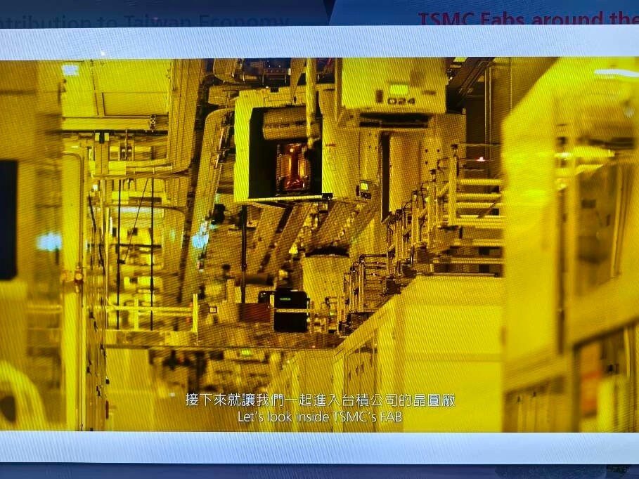 Taiwan ist das Herz der globalen Halbleiterindustrie. 80% aller Halbleiter werden in Taiwan hergestellt. 60% allein bei TSMC. Neben TSMC, die in der öffentlichen Berichterstattung sehr präsent sind, gibt es noch weit mehr große Hersteller, Fabs, Tester und Assembler in Taiwan und in anderen Ländern. Während es verständlicherweise streng verboten ist, in den sicheren Produktionsbereichen dieser Firmen Fotos zu machen, besteht allerdings die Möglichkeit für Fotos im TSMC Museum of Innovation in Hsinchu in Taiwan. Die Fotos, die man dort von den verschiedenen Lehrvideos machen darf, geben einen realistischen Einblick in den komplexesten industriellen Produktionsprozess der Welt. Der Eindruck in die Fortschrittlichkeit dieser Technologie und die damit verbundenen Anforderungen an die Sicherheit sind nicht nur auf TSMC beschränkt, sondern betreffen sämtliche Waferfabs, Tester und Assembler aller Hersteller in Taiwan und anderswo. Dieses ist eine Projektionsfläche im TSMC Museum of Innovation, von der die meisten der folgenden Fotos stammen: