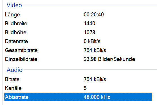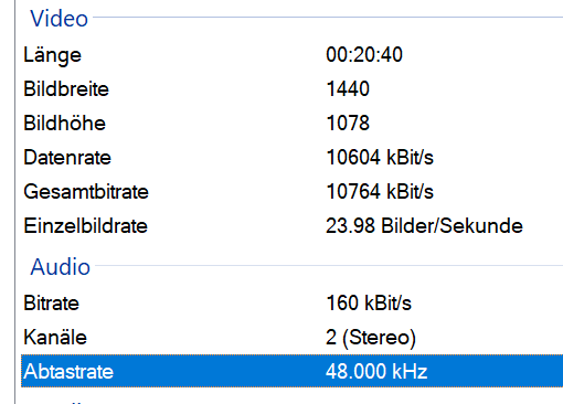Ich habe eine Videodatei aus den 30er Jahren die ca. 10 Minuten dauert und die ist 1,5 GB groß. Daneben habe ich eine einstündige Videodatei die FullHD ist, eine gute Bild- und Tonqualität hat und nur einen Bruchteil so groß ist. Wie kann das bei gleichem x264 Codec sein? Ich habe das Video aus den 30ern durch Handbrake gejagt (gleiche Einstellungen die ich immer nutze (Standardeinstellungen)) und die Datei wird nicht wirklich kleiner.