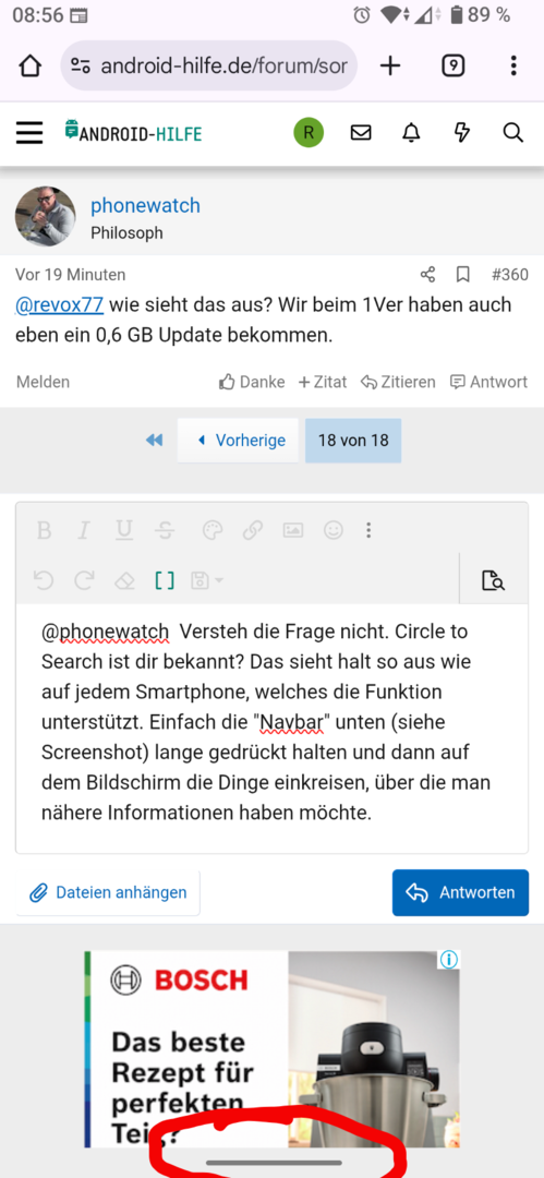 @phonewatch Versteh die Frage nicht. Circle to Search ist dir bekannt? Das sieht halt so aus wie auf jedem Smartphone, welches die Funktion unterstützt. Einfach die "Navbar" unten (siehe Screenshot) lange gedrückt halten und dann auf dem Bildschirm die Dinge einkreisen, über die man nähere Informationen haben möchte.