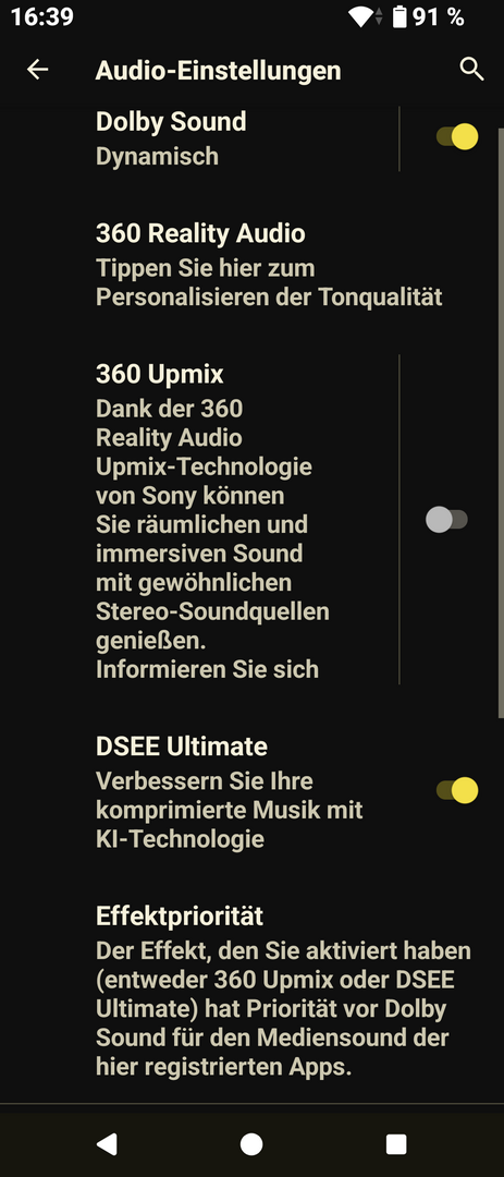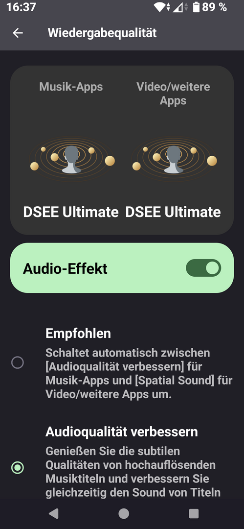 @Olley jaein bzw Audioqualitat verbessern immer an (DSEE Ultimate). Hatte ich beim 1 V auch