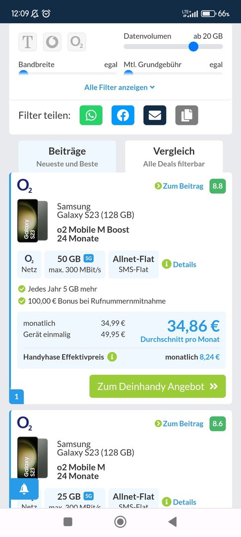 ich suche momentan einen Tarif mit Vertrag ab 20 GB, dazu ein S23.