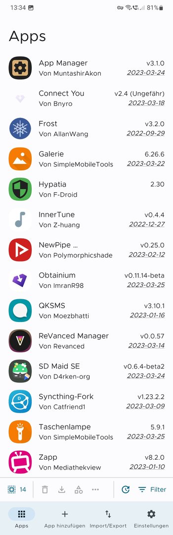 Die OpenSource-App Obtainium hält den Nutzer auf dem neuesten Stand zu Updates für solche Apps. Unterstützt werden momentan diese Plattformen: