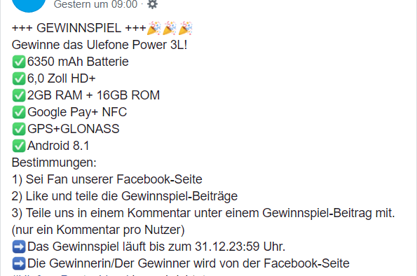 Also es gibt laut ulefone facebook ein power 3 L mit android 8.1.