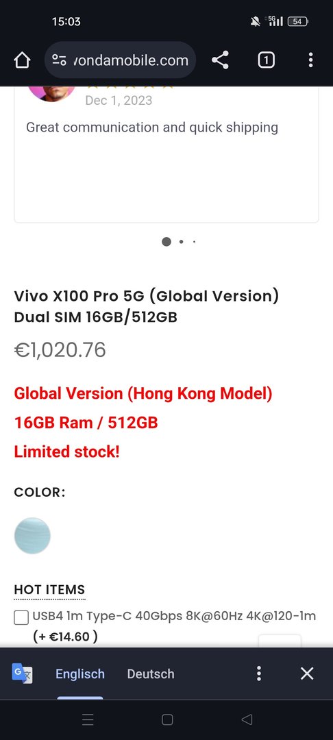 Global Version hat eSIM feature.Hommy schrieb:Hat das Vivo x100 Pro von Wondamobile in der Globalversion auch Esim?