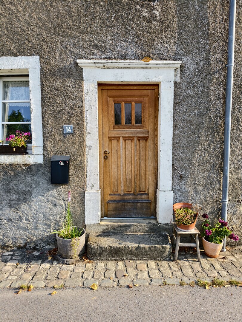 Das anhängende Bild von der Tür: super Motiv, aber weder scharf noch echte Farben. Mit einem Pixel oder der ProShot-App wahrscheinlich deutlich besser im Ergebnis.
