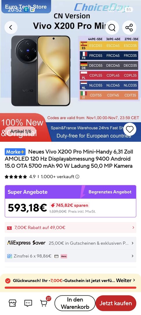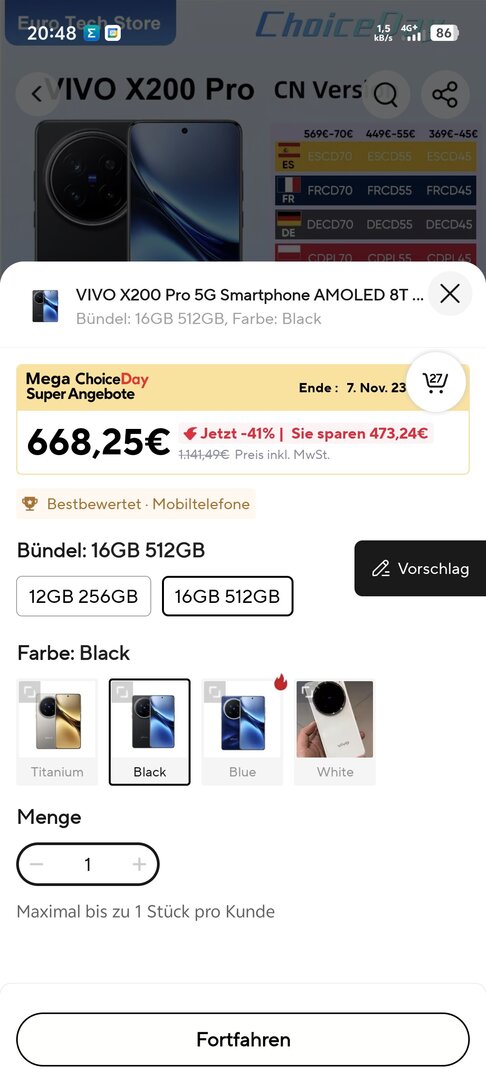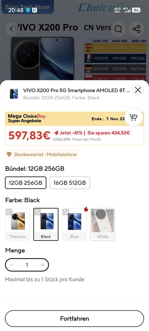 Bei Ali gibt es die 512GB Version für unter 600€ im genau zu sein 595