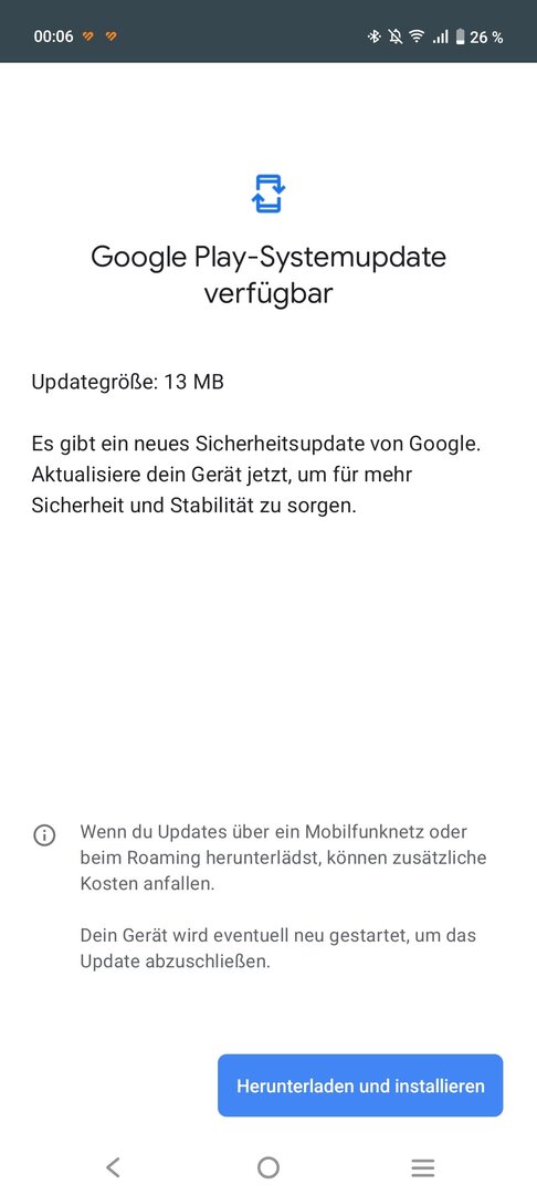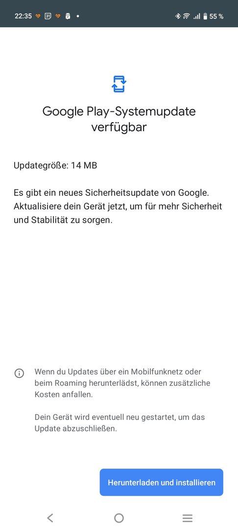 Nach der Einrichtung wollte ich wie üblich nach Updates schauen und stellte erschrocken fest dass das Google System-Update immer noch auf 1. Oktober 2024 festhängt und kein Update angeboten wird.. Auch der Sicherheitspatch hängt auf April 2025. Finde ich ziemlich merkwürdig..