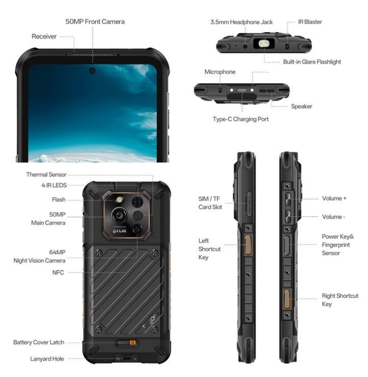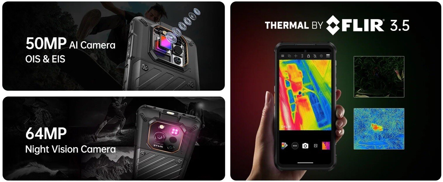 Das hier genannte XEVER 7 PRO kommt mit einer Triple-Cam auf der Rückseite bestehend aus einer Hauptkamera mit 50 Megapixel, einer 64 Megapixel Nachtsichtkamera sowie einer Wärmebildkamera - die Ultraweitwinkelkamera entfällt also zugunsten der WBK.