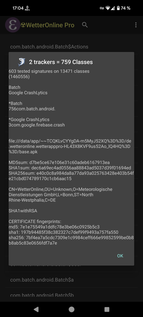 Qualitativ ist "Foreca" oder "Wetter XS Pro" für mich gut und zuverlässig. Oder Today Weather je nach Wahl der Quelle. Aber enthalten ebenfalls alle Tracking.