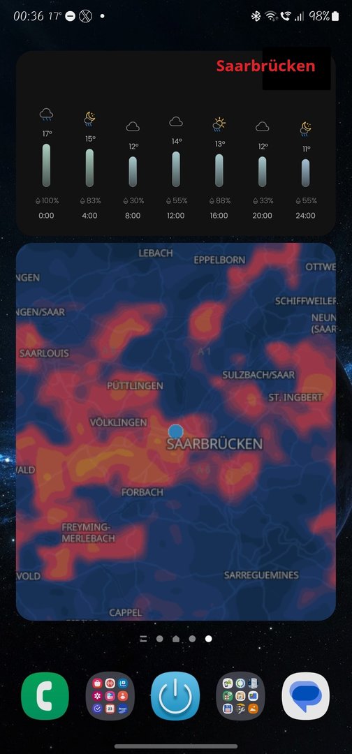 Es regnet in Uetersen schon die ganze Nacht, im Regen Radar Widget ist alles blau, also Regen, aber im normalen 4x2 Widget steht " bedeckt " und aktualisiert sich nicht