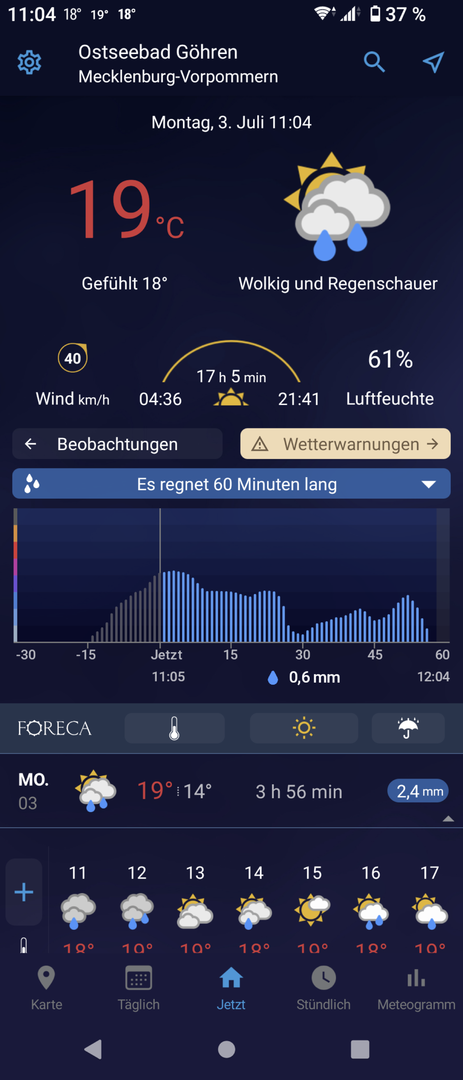 ) als Foreca; wenn die Werte sich Foreca näher anpassen, wird's hier auch die Pro.