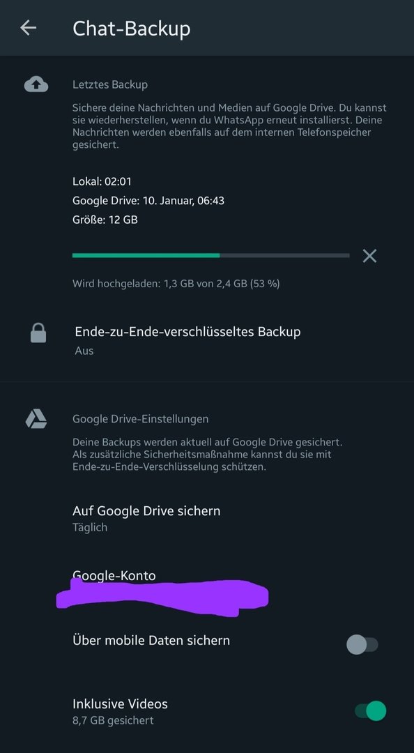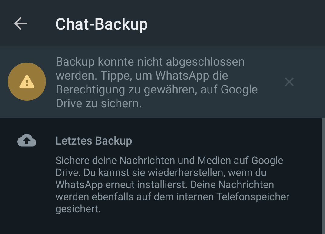 WhatsApp - Chat-Backup hängt beim Upload auf Google Drive