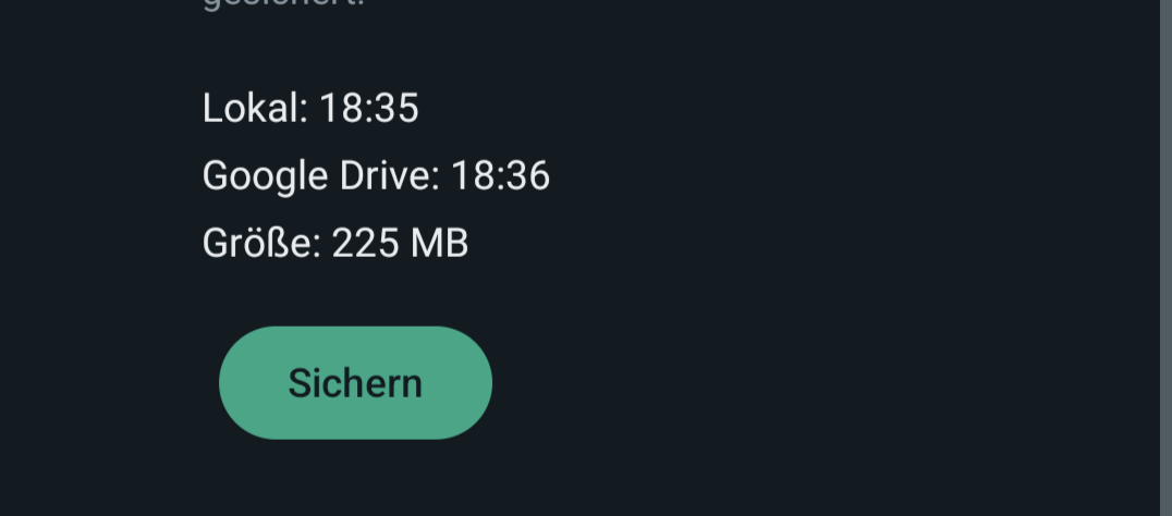 Ich habe noch einen zweiten WhatsApp-Account unter meinem Google-Account laufen und da ging die Sicherung - bis heute Nacht - immer reibungslos. Nun klemmt der auch ...