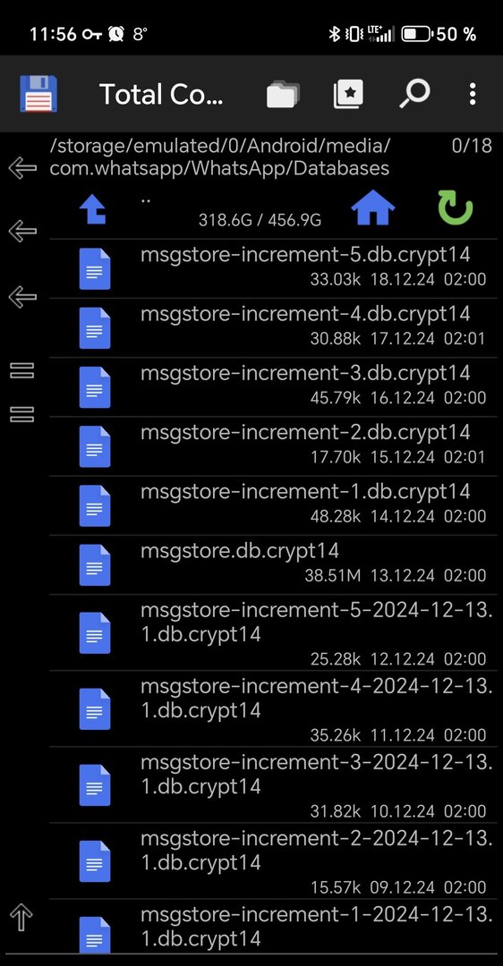 Am liebsten wäre mir natürlich die Option, dass das BackUp funktioniert....mir sind die Chats wirklich unheimlich wichtig :-(