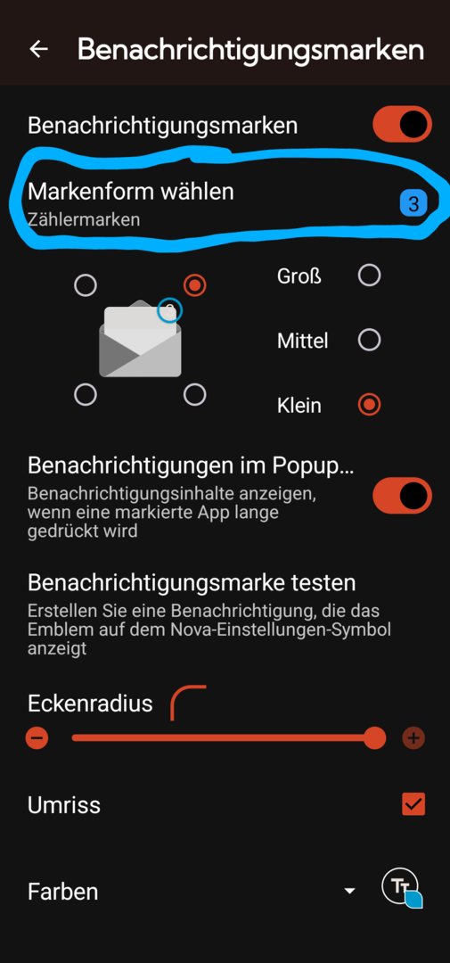das konnte ich wieder zurückstellen auf Benachrichtigung punkt.)