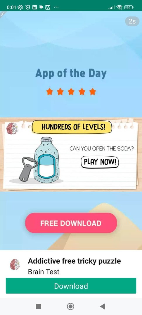 ich habe ein Problem mit Whatsapp; jedes Mal, wenn ich auf die App zugreife, bekomme ich eine Popup-Werbung on "Brain Test" angezeigt. Das Problem tritt ausschließlich bei Whatsapp auf. Die App wurde überl Googleplay installiert; es ist keine inoffizielle Version.