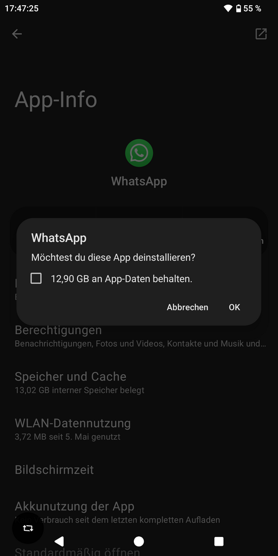 Klaus986 schrieb:Ich drücke ganz bestimmt nicht auf deinstallieren bei meinem richtigen Account, nur um hier einen Screenshot von solch einer Abfrage posten zu können. ;-)