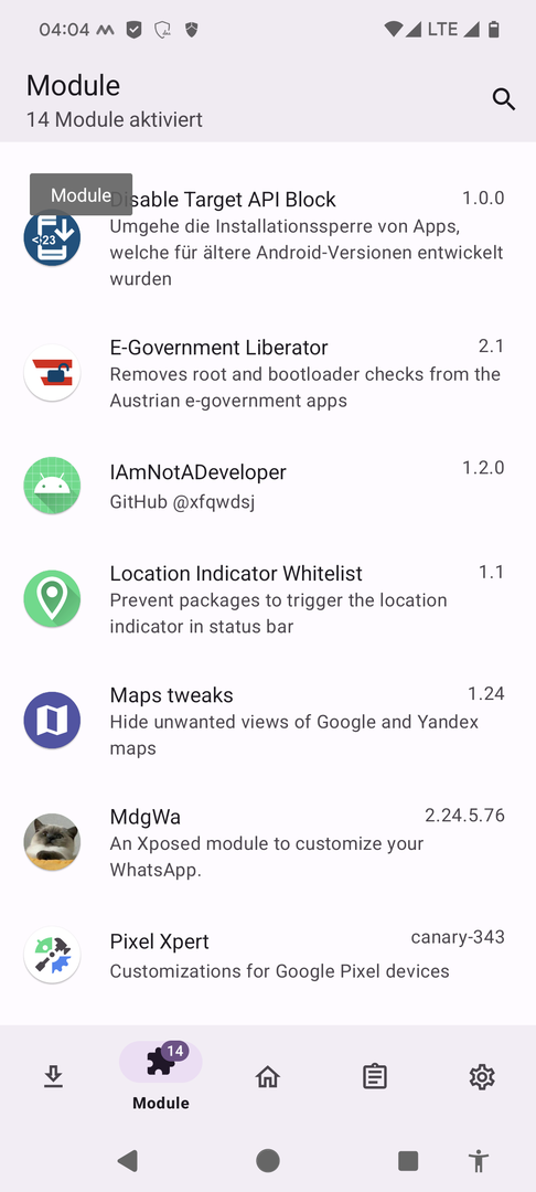 - Richte in LSPosed die Module ein: