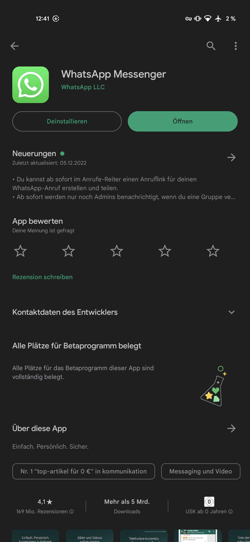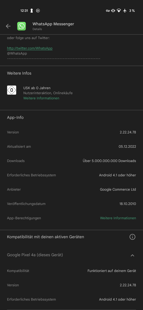 Ich habe nun mal die deiner Aussage nach letzte offizielle 2.22.13.77 von apkmirror geladen, die wird dort genauso als non-beta geführt, wie auch die 2.22.24.78. Ergebnis: Version veraltet und automatisches Update auf Version 2.22.24.79.