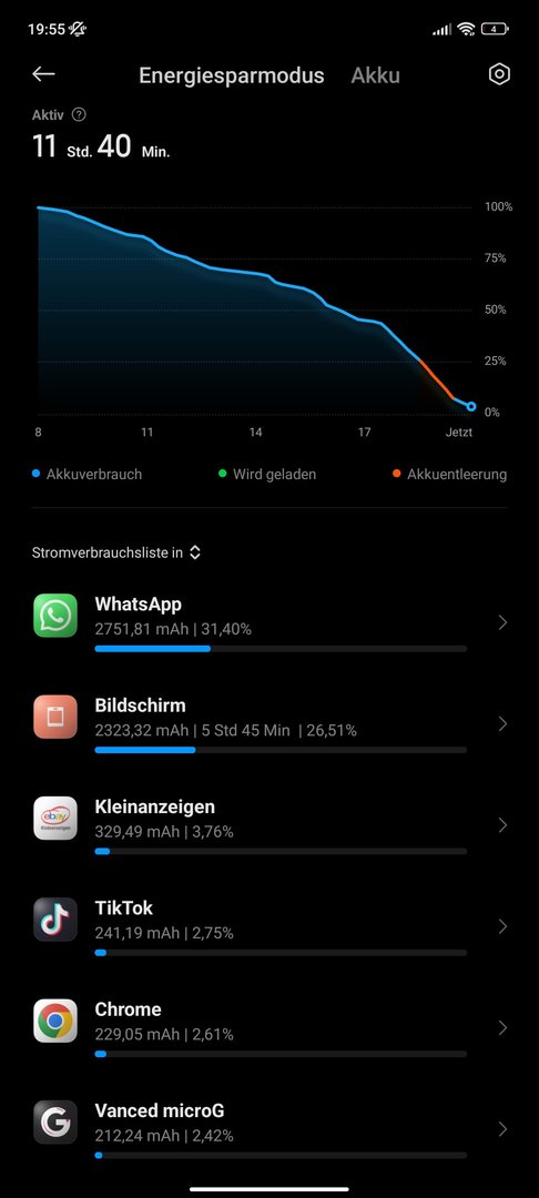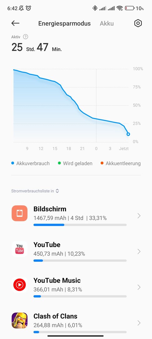Hier hatte ich nach 12 - 17 Stunden ohne laden ein Screen on Zeit von 2,5 Stunden und dann war das Ding leer.