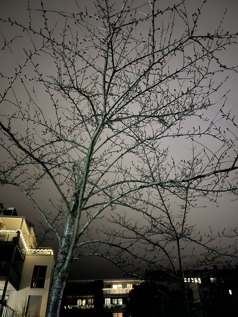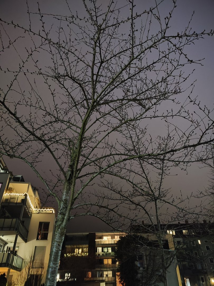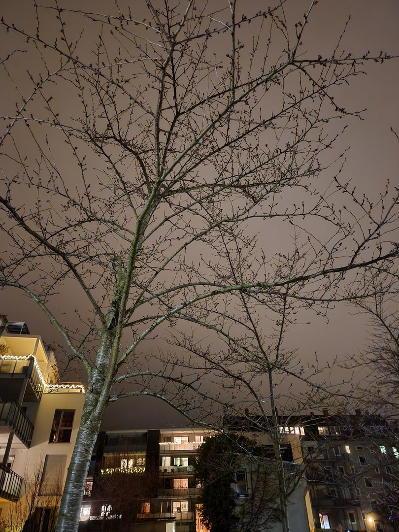 Aber trotzdem ist der Baum in den ersten Bildern halt grau / gräulich und nicht braun . Die Straßenlaternen machen auch eher weißes / neutrales Licht und kein oranges.