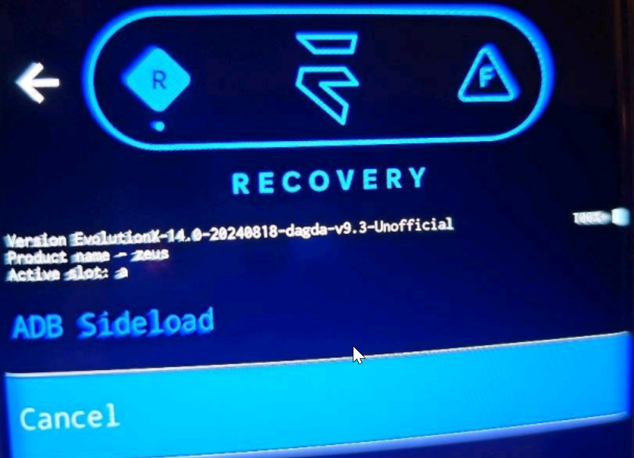 Ich sage ja und das Ding fährt ins Recovery wo ich auswähle "apply update" ->apply from ADB -> dann kommt das hier, wo ich nur "cancel" und nach oben "Pfeil nach links" auswählen kann.