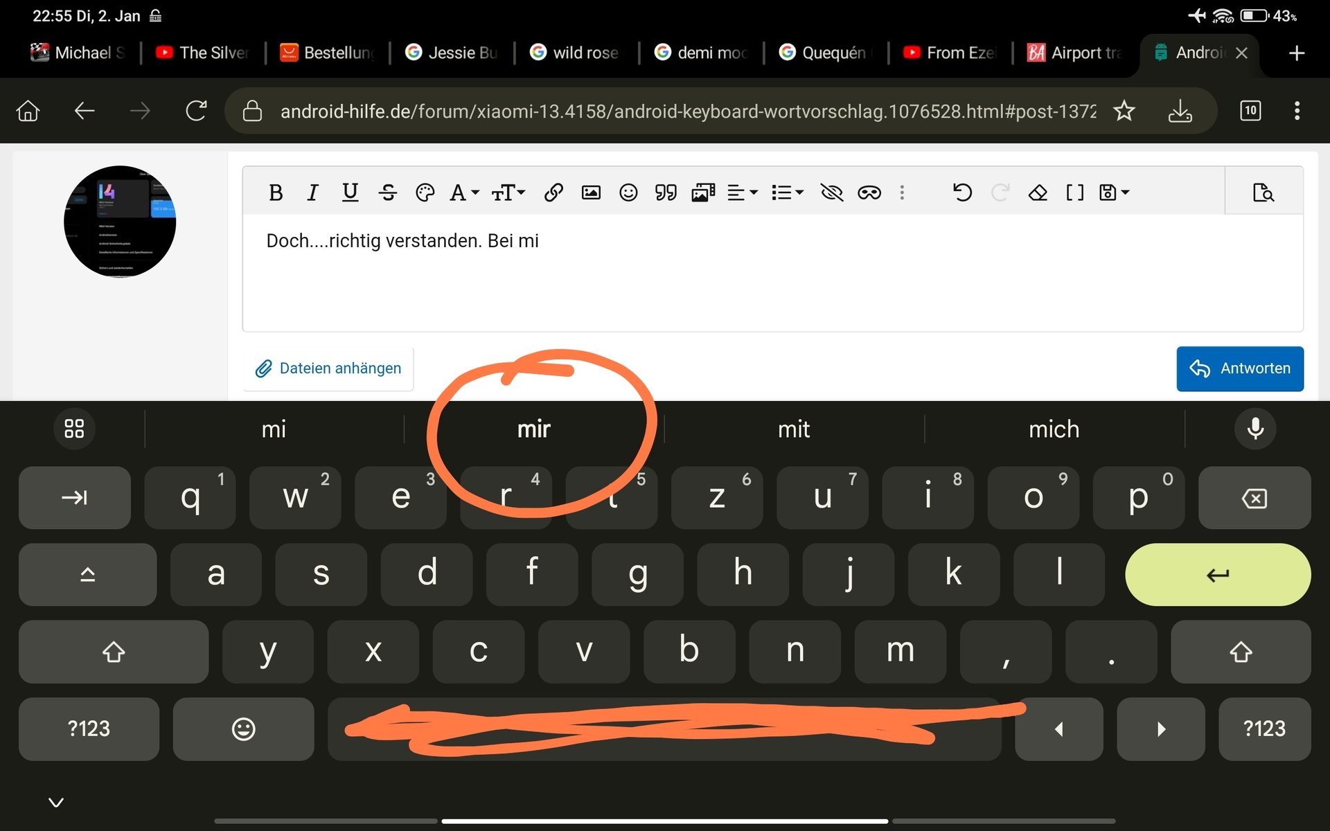 Ich suche nach der Möglichkeit, Wortvorschläge zu erhalten, diese aber nicht automatisch bei Leerzeichen einzufügen.