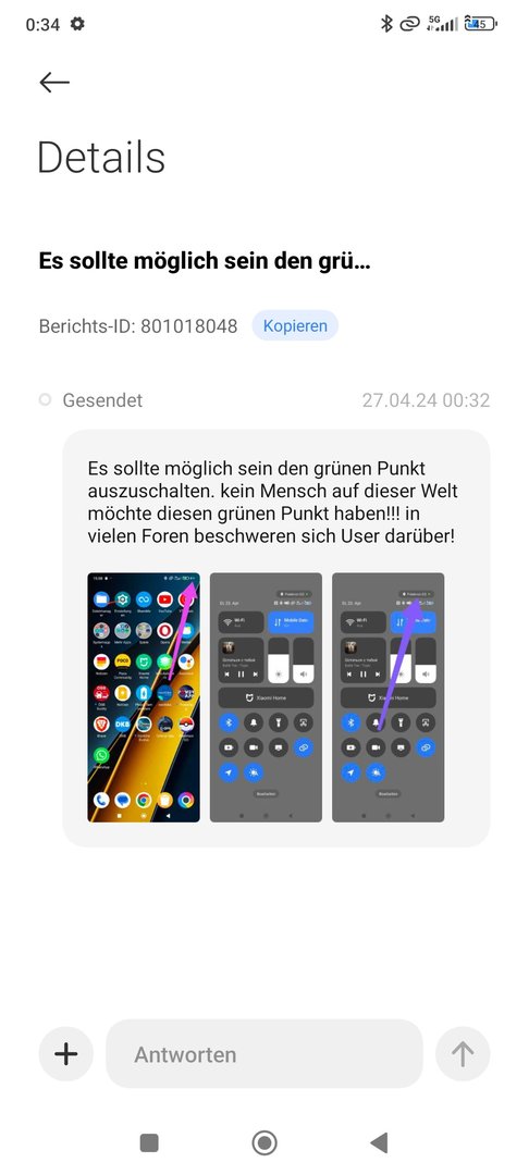 Bei mir und meinem HyperOS ist der Grüne Punkt sehr selten und ganz kurz zu sehen.