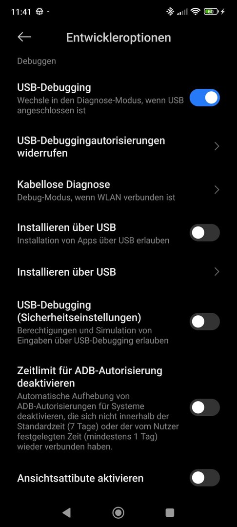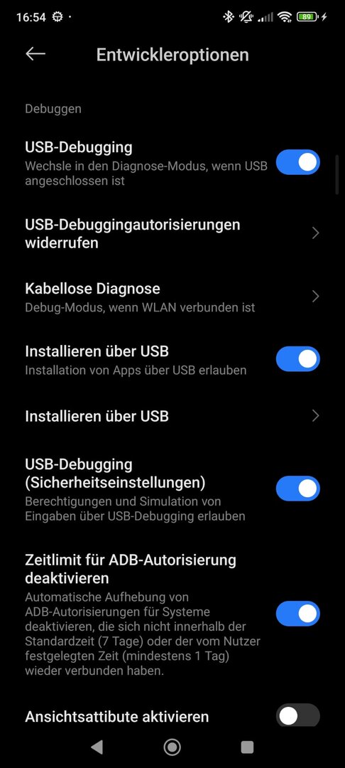 Gibt es bei mir auch nicht, da sich die Anleitung auf Huawei-Geräte bezieht. Ich habe jedoch "Installieren über USB", "USB-Debugging (Sicherheitseinstellungen)" und "Zeitlimit..." aktiviert.Graf00 schrieb:Menüpunkt „ADB Debugging im Laden Modus aktivieren“