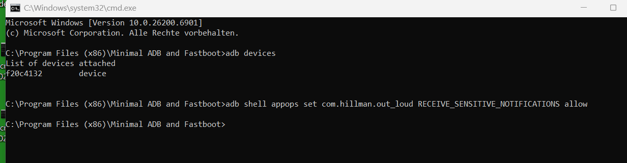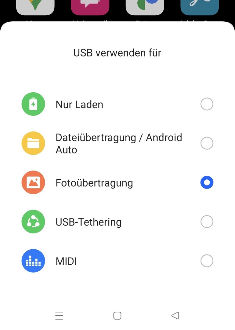 Ich bekomme nur eine ADB Verbindung, wenn ich USB „Fotoübertragung“ aktiv habe.
