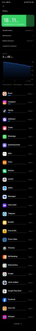 Das ist interessant. Ich hatte bis zum letzten Update auch immer super Laufzeiten. Seit letzten Sonntag ist allerdings der Wurm drin. Jetzt komm ich nicht mal mehr über den Tag. In der Akkustatistik ist nix zu erkennen, glaub auch die ist für die Tonne.thunder43 schrieb:ich nutze seit Januar die Weekly und werde auch dabei bleiben. Bis jetzt habe ich nicht ein einziges Problem damit gehabt.