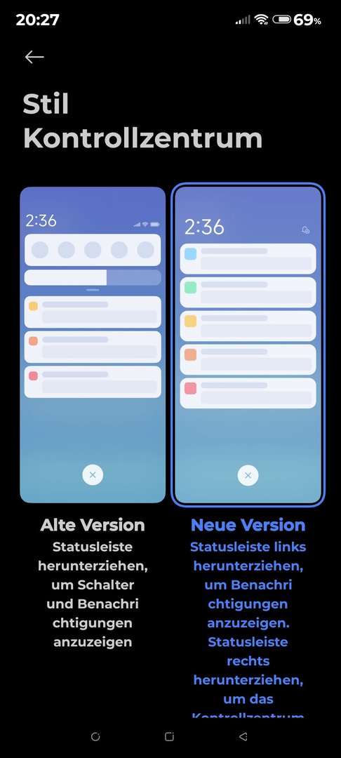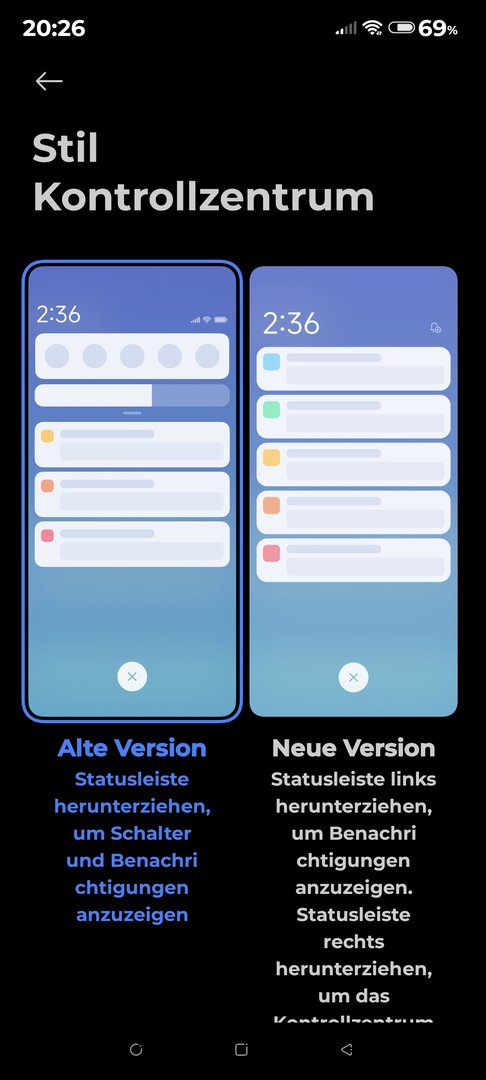 Kann es sein, das man auf dem Gerät nicht mehr zwischen der Klassischen und Xiaomi Oberfläche im Kontrollzentrum wechseln kann?