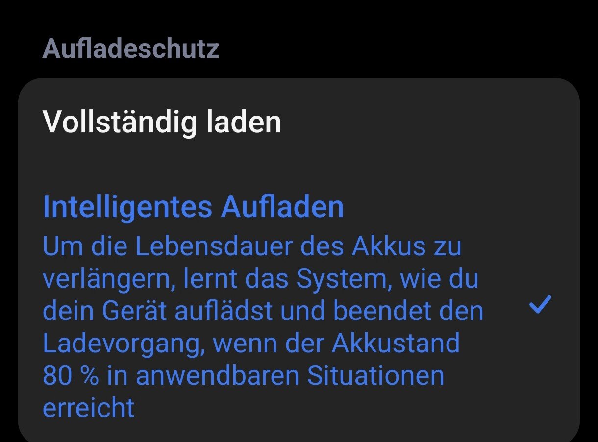 Ich lade meistens bis 90% auf mit einem 15W Netzteil.