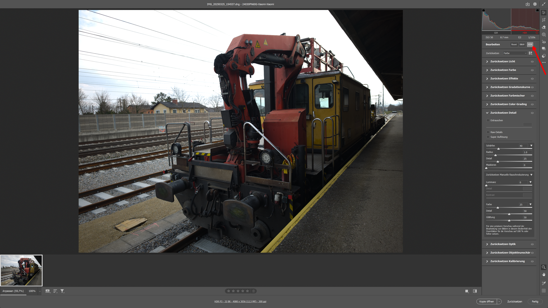 Ein Zeichen für signifikant unterschiedliches Processing ist, dass (zumindest bei 12.5MP) ohne RAW im Pro Modus eine Gain Map erstellt und gespeichert wird (es also echtes HDR gibt).