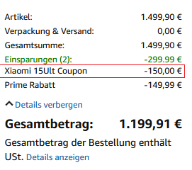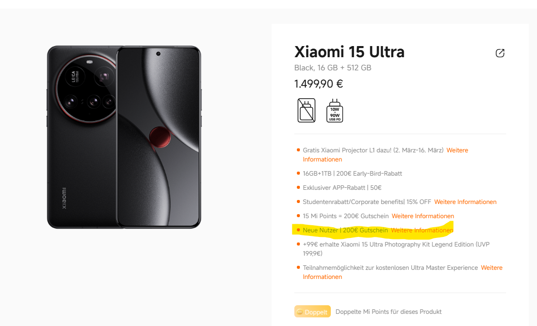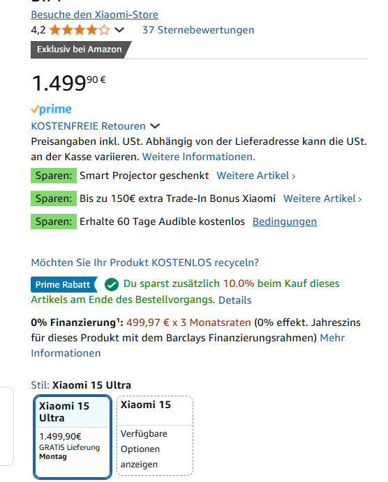 das Xiaomi 15 Ultra gibt es aktuell bei Amazon mit interessanten Rabatten, wenn man Prime-Mitglied ist:
