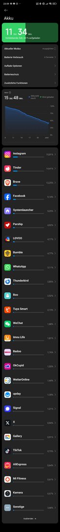 Auf fast zwei Tage Laufzeit und bei noch 13% RestkapazitätKevin6791 schrieb:Fünfeinhalb Stunden SoT ist aber nicht prickelnd sofern ich die Grafik richtig interpretiere.