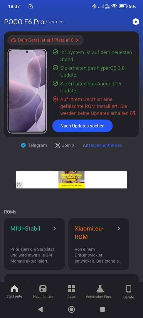 Ich nutze mein Poco F6pro so, wie es geliefert wurde. Also kein Root oder manuell installiertes.