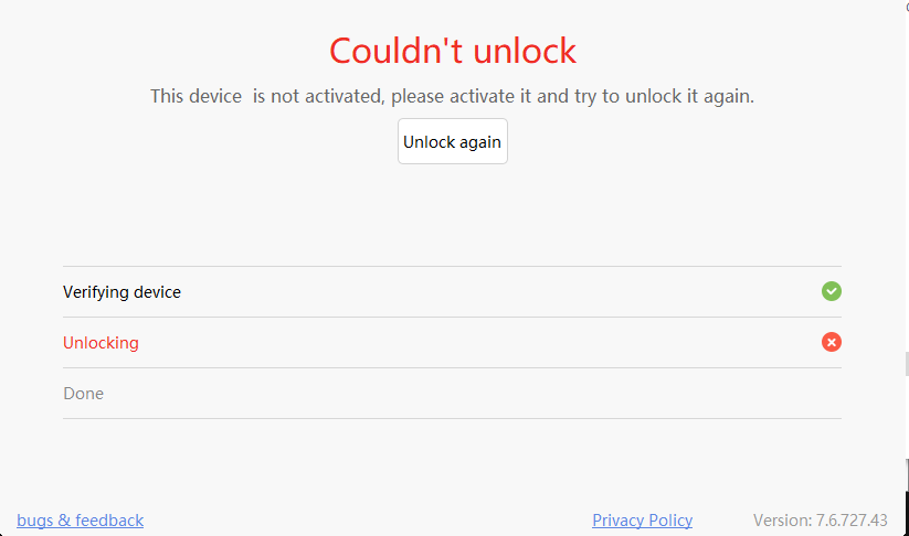 Wenn ich den Bootloader entsperren möchte, kommt folgende Meldung "this device is not aktivated"
