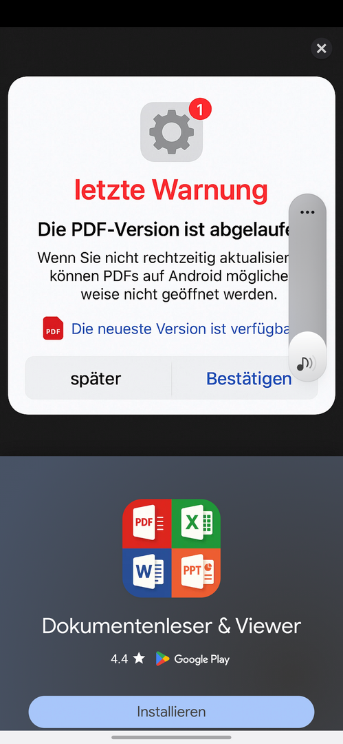 Hallo zusammen, ich benutze ein Redmi14 mit HOS 2.0.202.0 Android 15. In der Sicherheits App erscheint in letzter Zeit immer wieder ein Hinweis auf eine abgelaufene PDF Version. Aktuell nun mit letzter Warnung. Kommt die Meldung von Xiaomi/Redmi oder ist das Fake/ Betrug?? PDF Dateien im Dateimanager lassen sich z.zeit öffnen. Hat jemand einen Tipp? Gruß Thomas