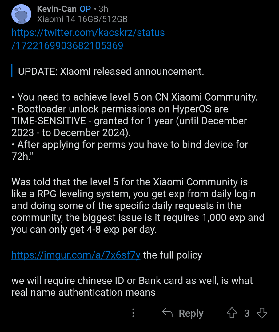 Mit HyperOS werdet ihr nicht nur das tun müssen, sondern zusätzlich noch das Level 5 im Community-Forum von Xiaomi erreichen. Zudem können nur noch drei Geräte pro Jahr freischaltet werden.