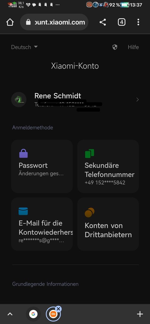 Soeben habe ich das Gerät zurückgesetzt und nun soll ich mich mit meinem mi Konto anmelden.