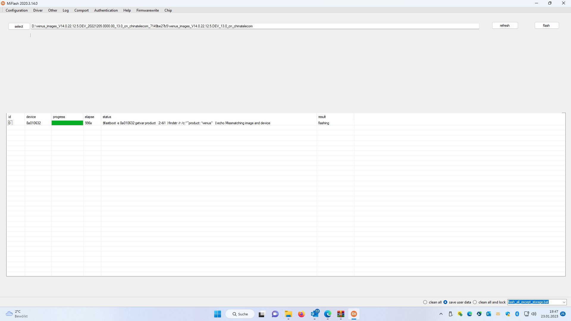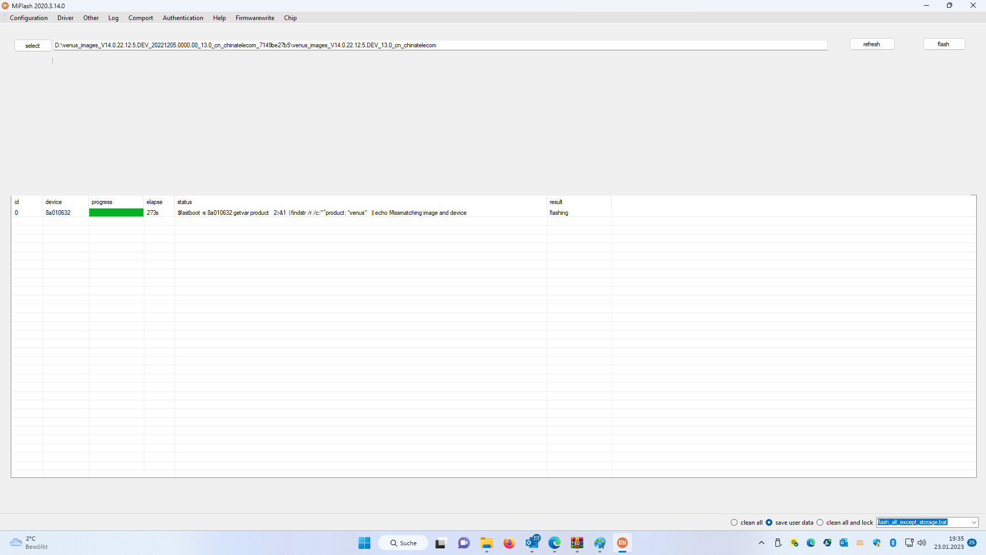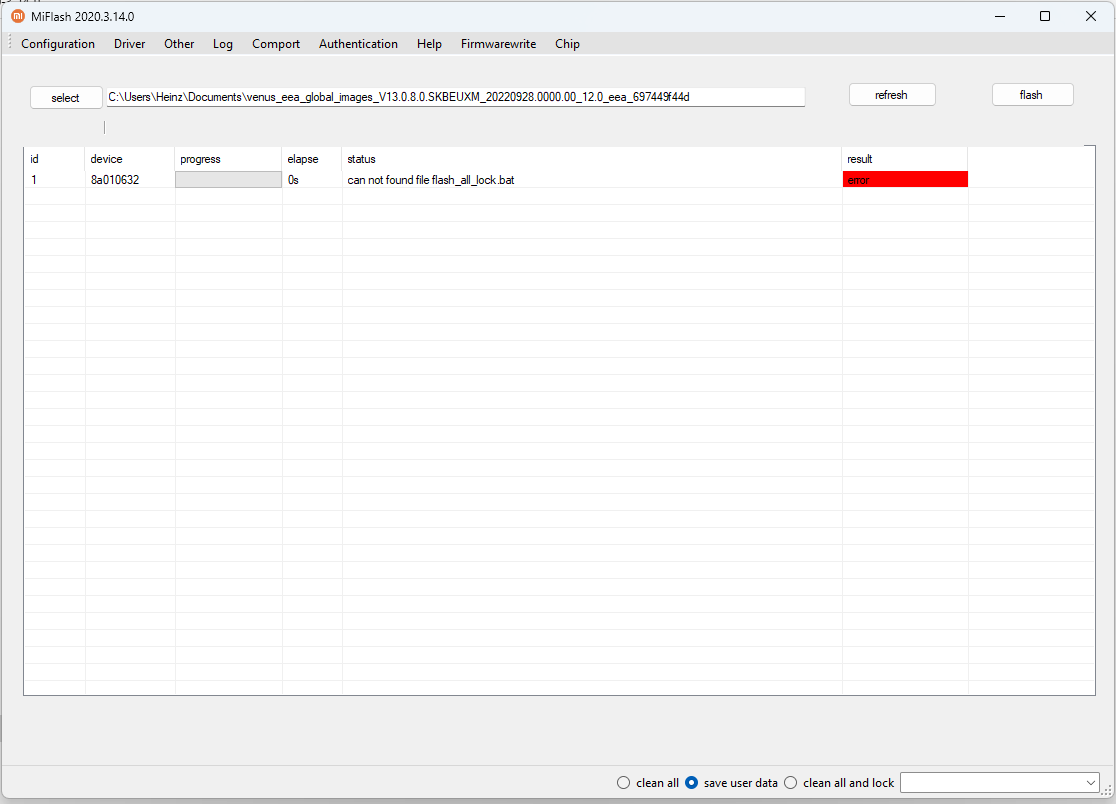 Das tool findet das flash Script nit