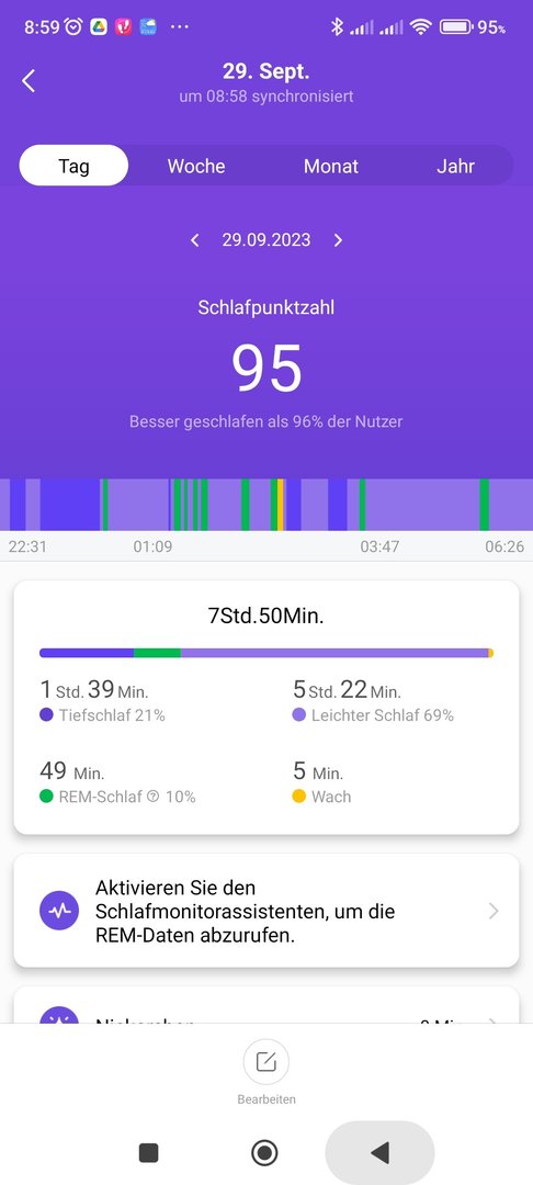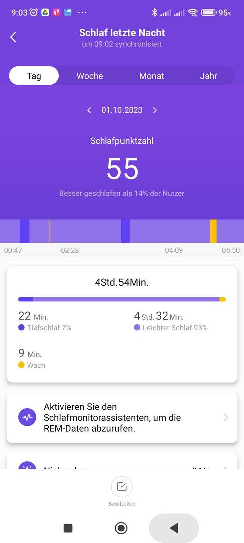 Hat auch nicht funktioniert. Vielleicht liegt es auch daran, dass ich nach meiner Hüft-OP immer noch auf dem Rücken "schlafen"darf und sehr wenig Schlaf bekomme. Wahrscheinlich immer unter 30 min.