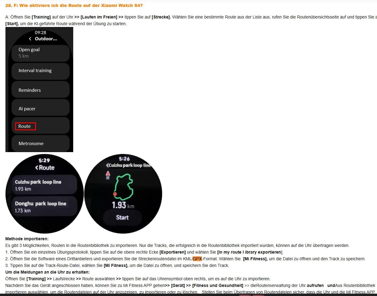 Xiaomi Watch S4 KML/GPX Daten auf die Uhr übertragen
