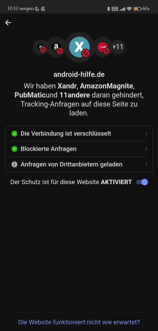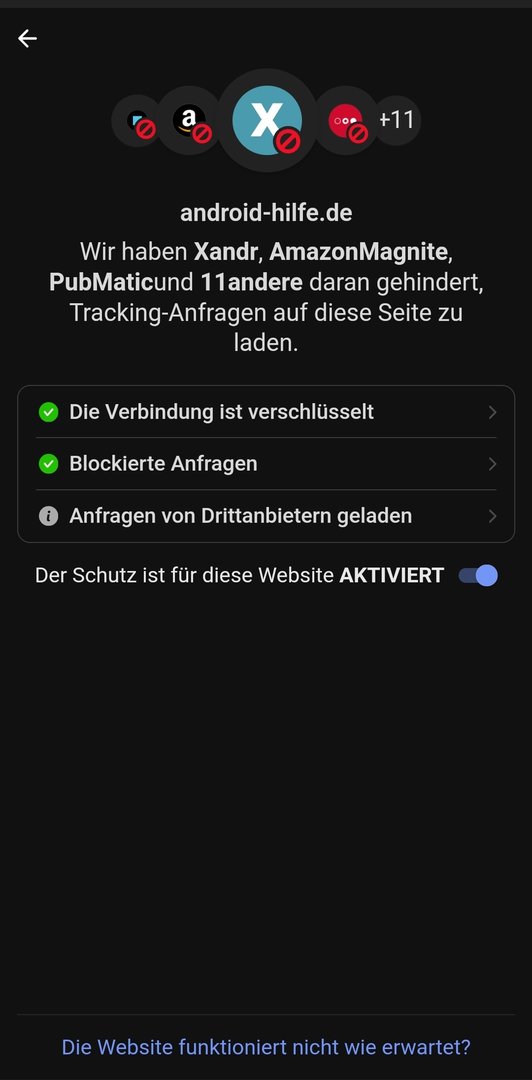 Zeigt an welche Tracker über diese Seite blockiert werden