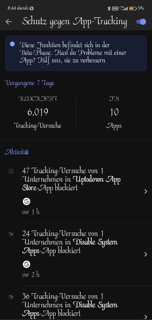 über eine Million Tracker und ich hab nicht mehr als vier fünf Drittanbieter Apps zusätzlich installiertDDG hat offenen Beta Einstieg