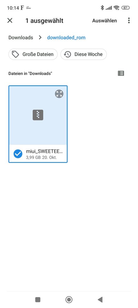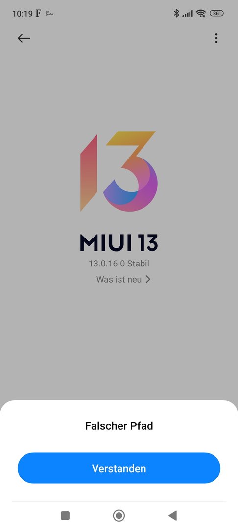 Nachdem ich bisher kein Update auf 14 erhalten habe, habe ich gestern manuell V 14.0.3.0.TKFEUXM heruntergeladen und in downloaded_rom eingestellt. Nach Updatepaket auswählen, anhaken der Datei und verlassen über Dreieck nachlinks erhalte ich den Hinweis Falscher Pfad.