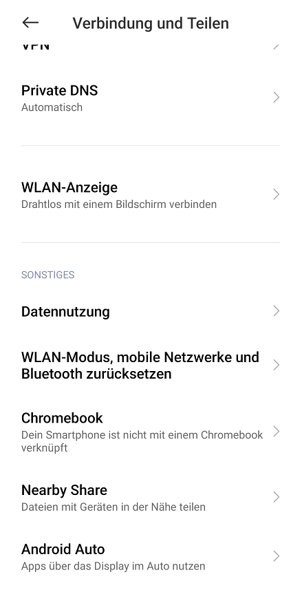 Ergebnis: In der gesamten Oberfläche gibt es kein NFC, es taucht überhaupt nicht auf, auch NFC-Dienste sind nicht vorhanden.