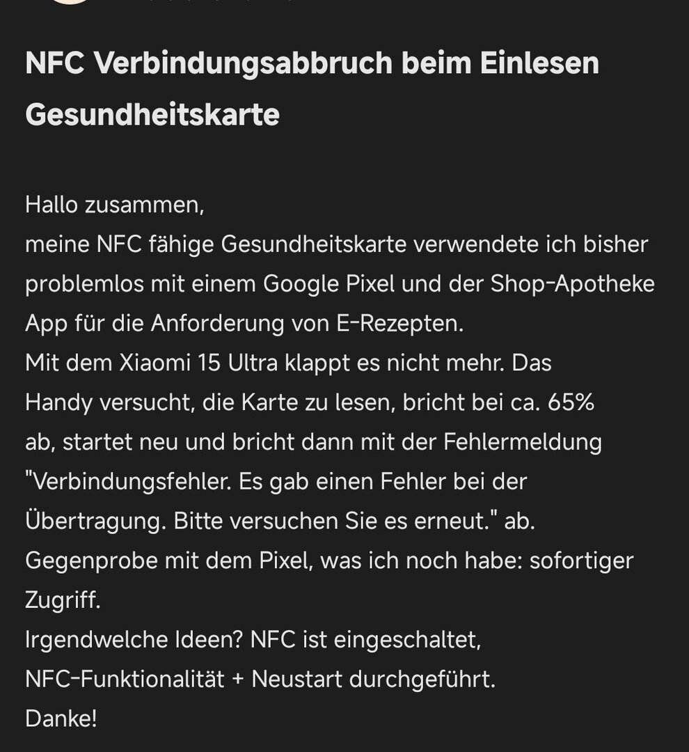 ich habe wie viele andere auch das NFC Problem mit der AusweisApp.
