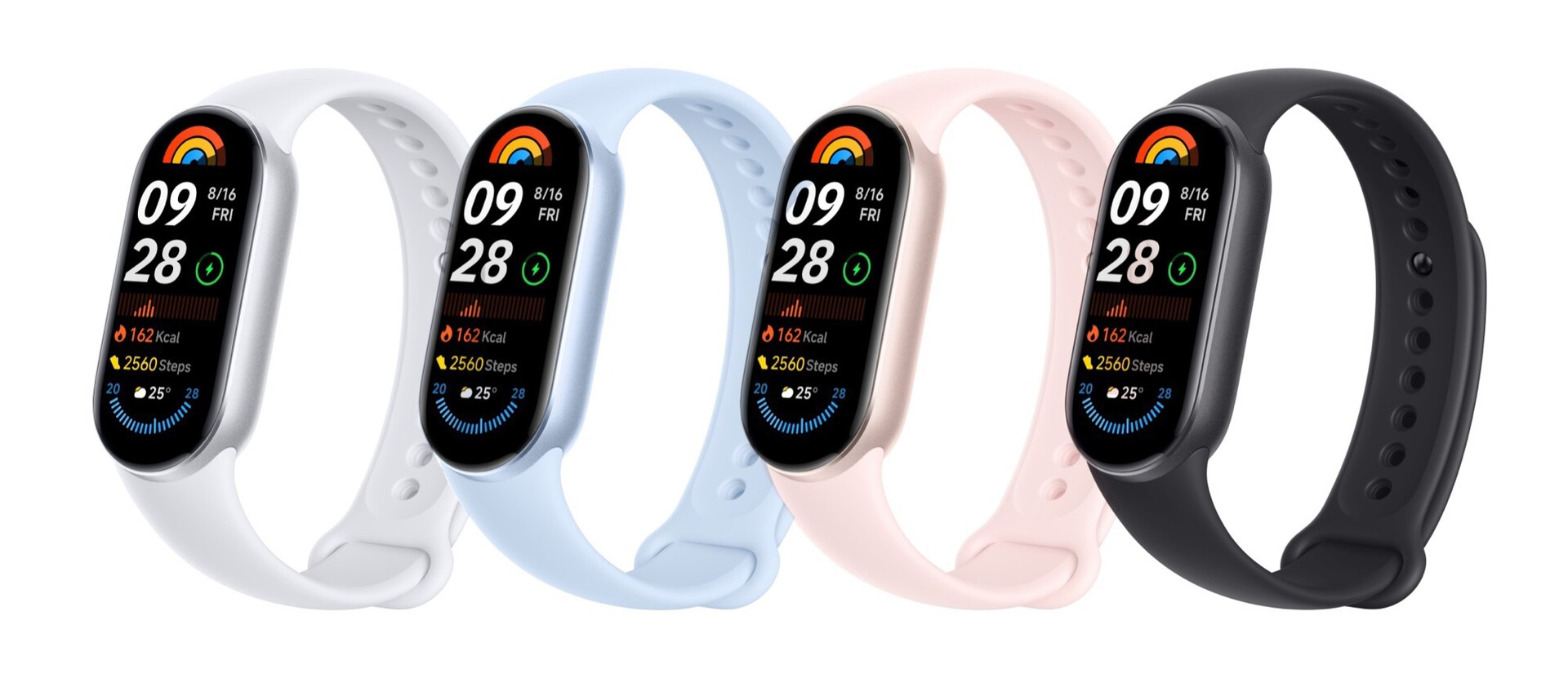 Das neue Xiaomi Smartband 9 soll es in fünf Farbvarianten geben: Silber, Schwarz, Rosa, Blau sowie Lila.
